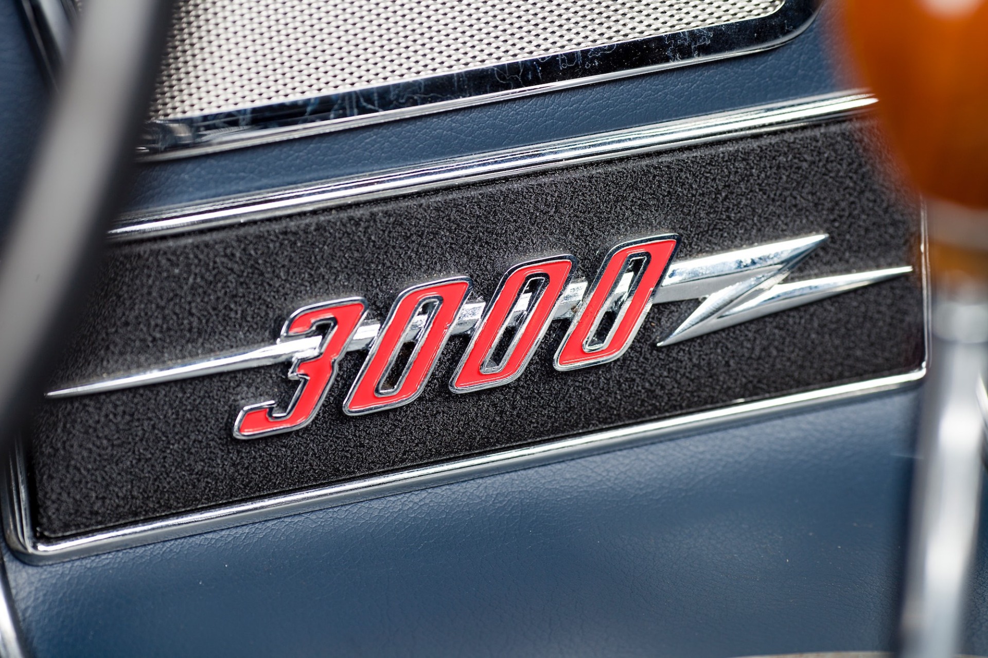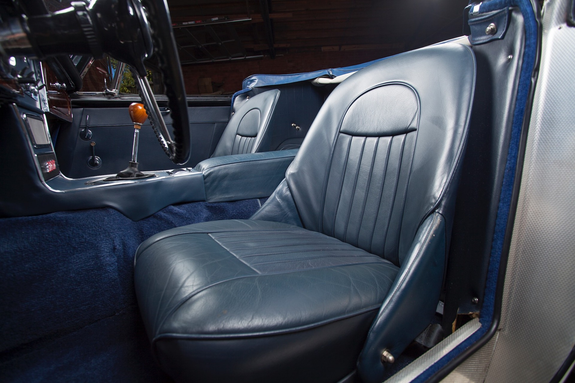 The blue interior has been refurbished and includes the factory banjo-style