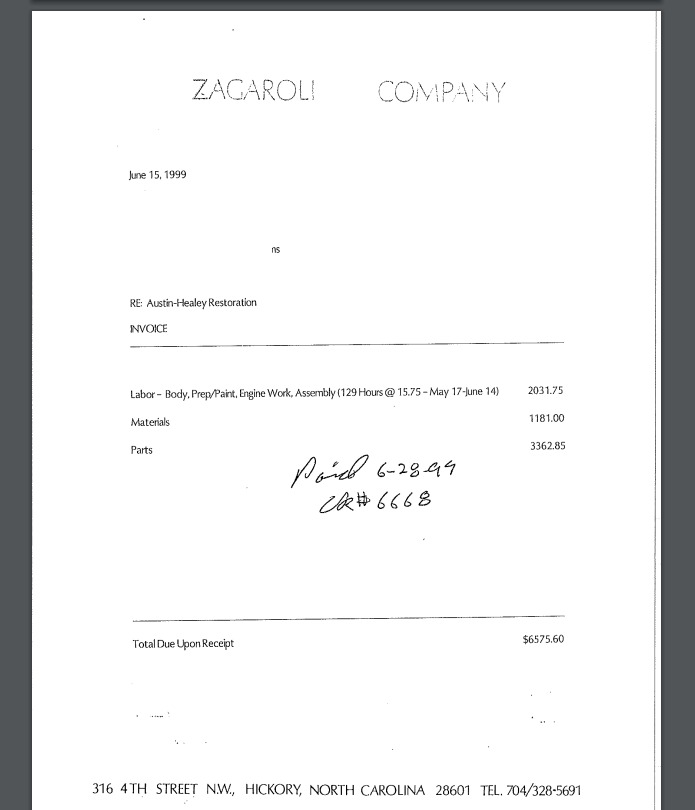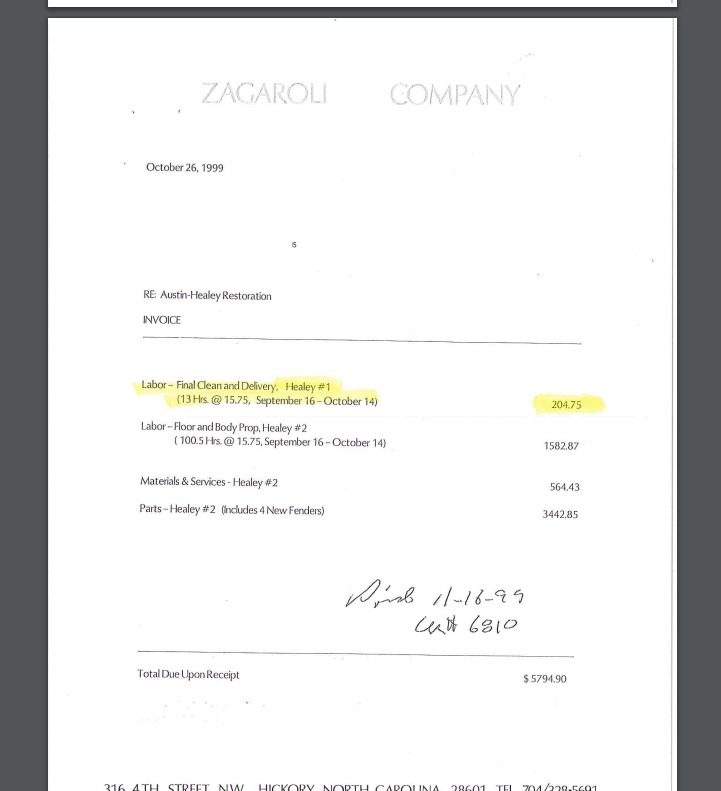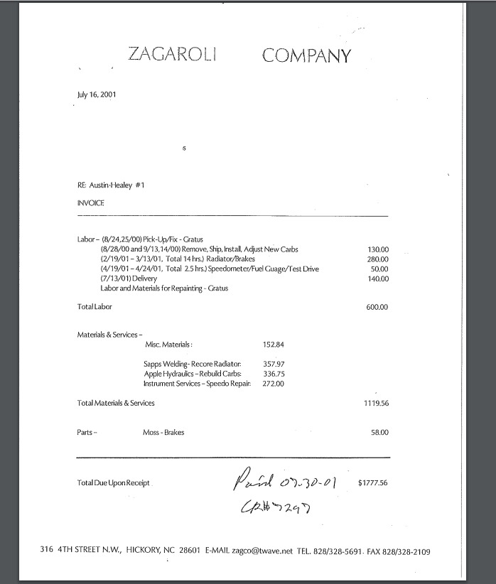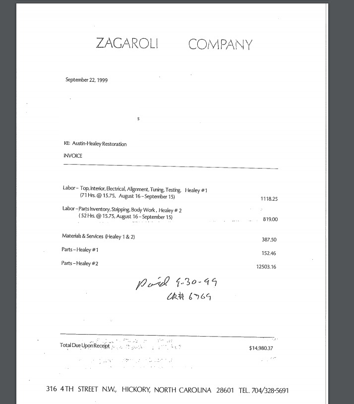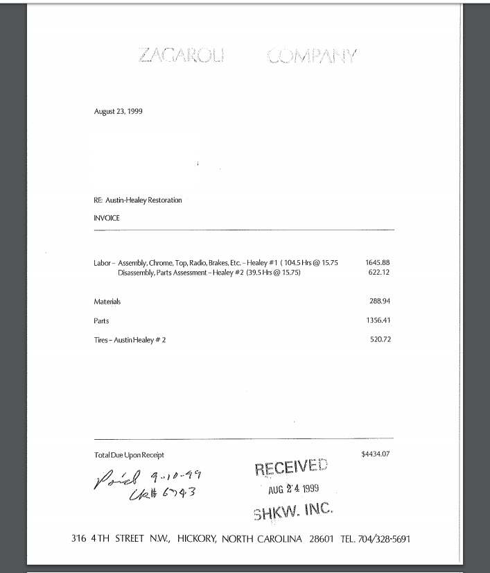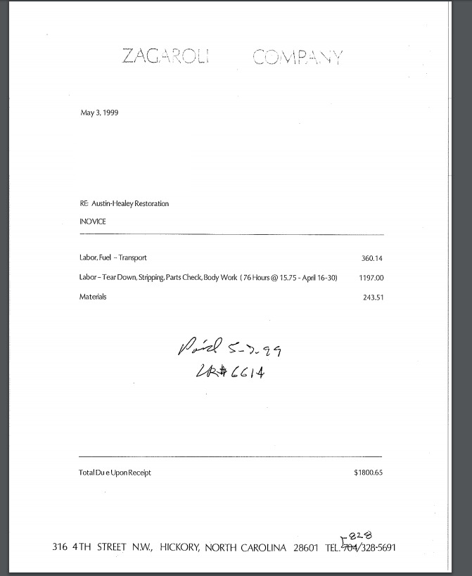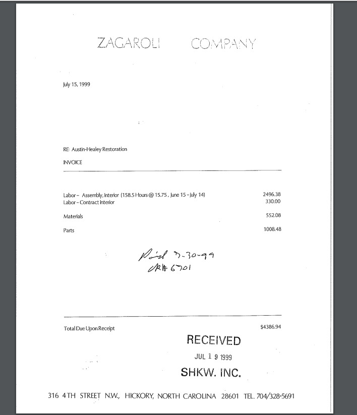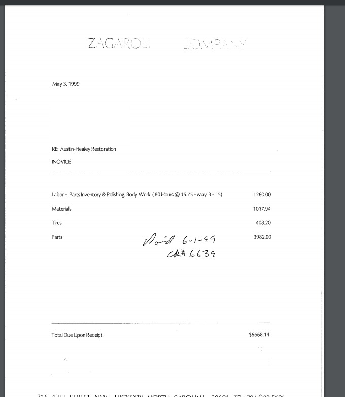 parts receipts, as well as labor breakdowns for mechanical work. A video showing