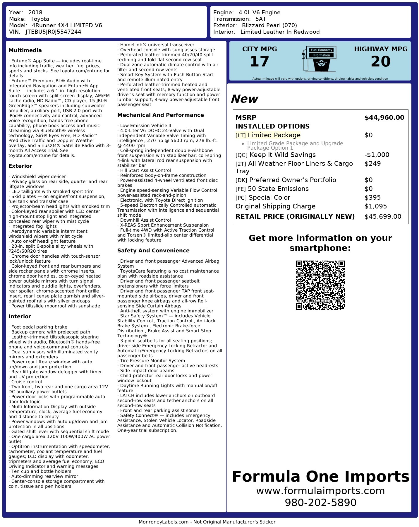 2018 TOYOTA 4RUNNER LIMITED