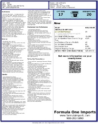 At Formula One Imports we pride ourselves on detailed and accurate listings for all our vehicles. In some cases, a typographical error or incorrect options or mileage may be shown. Due to our high volume of sales, Formula One Imports cannot be held responsible for typos or inaccurate descriptions. Please be sure to refer to the detailed