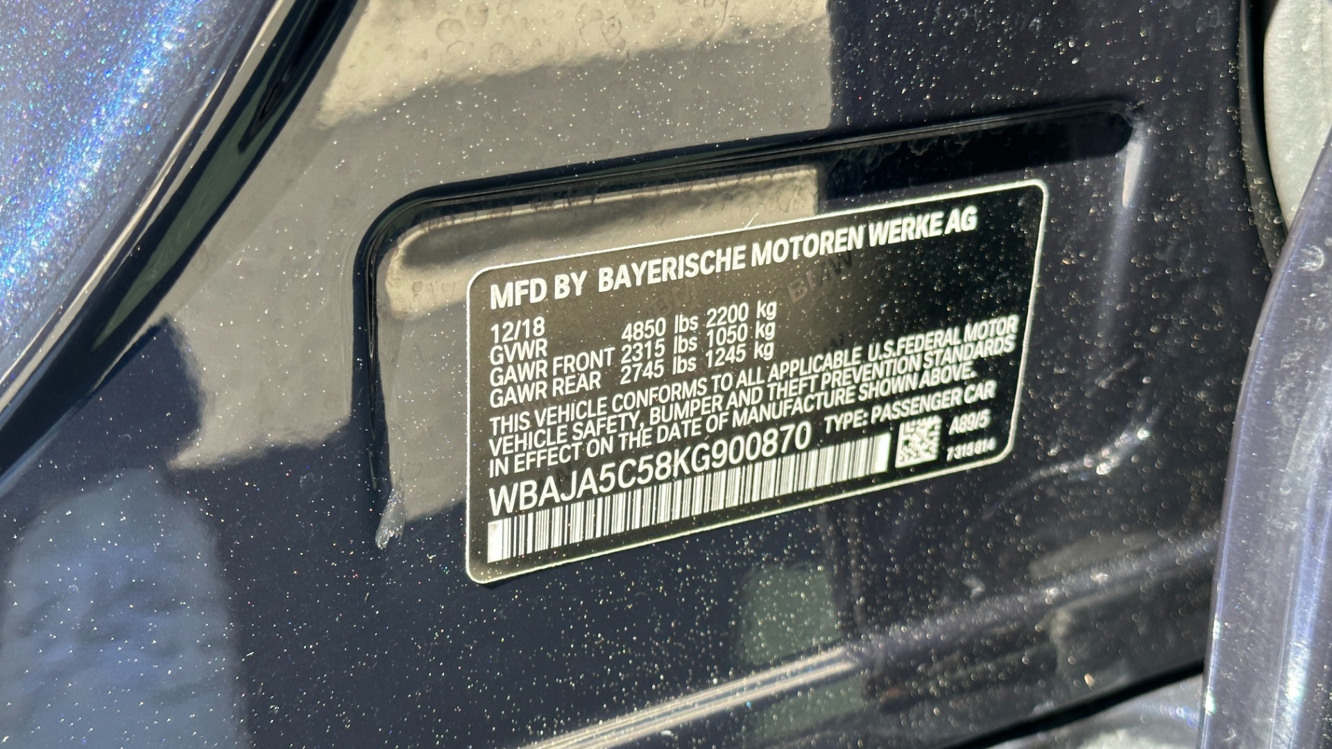 | VIN: | WBAJA5C58KG900870 |