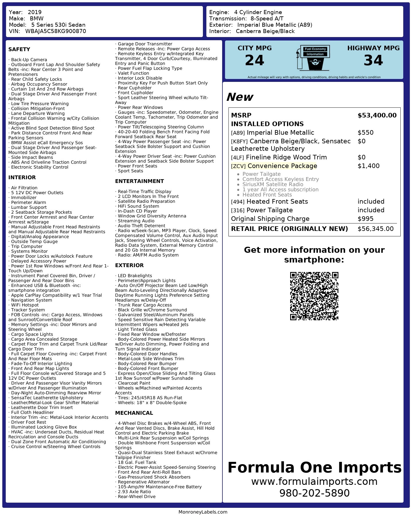 WE CAN FINANCE THIS 2019 BMW 530I FOR UP TO 84 MONTHS WITH ZERO DOWN PAYMENT