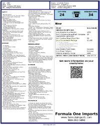 At Formula One Imports we pride ourselves on detailed and accurate listings for all our vehicles. In some cases, a typographical error or incorrect options or mileage may be shown. Due to our high volume of sales, Formula One Imports cannot be held responsible for typos or inaccurate descriptions. Please be sure to refer to the detailed