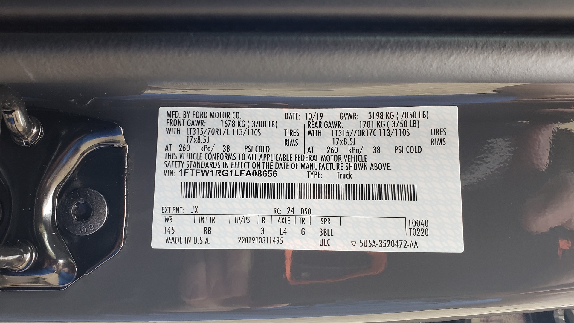 | VIN: | 1FTFW1RG1LFA08656 |