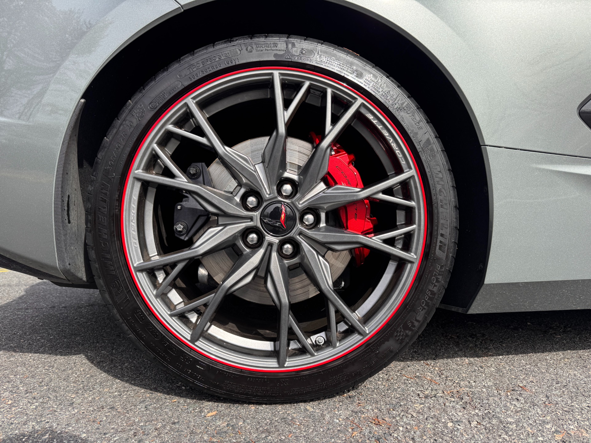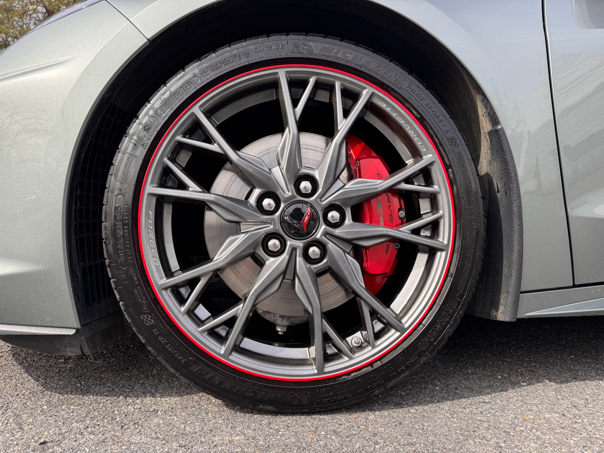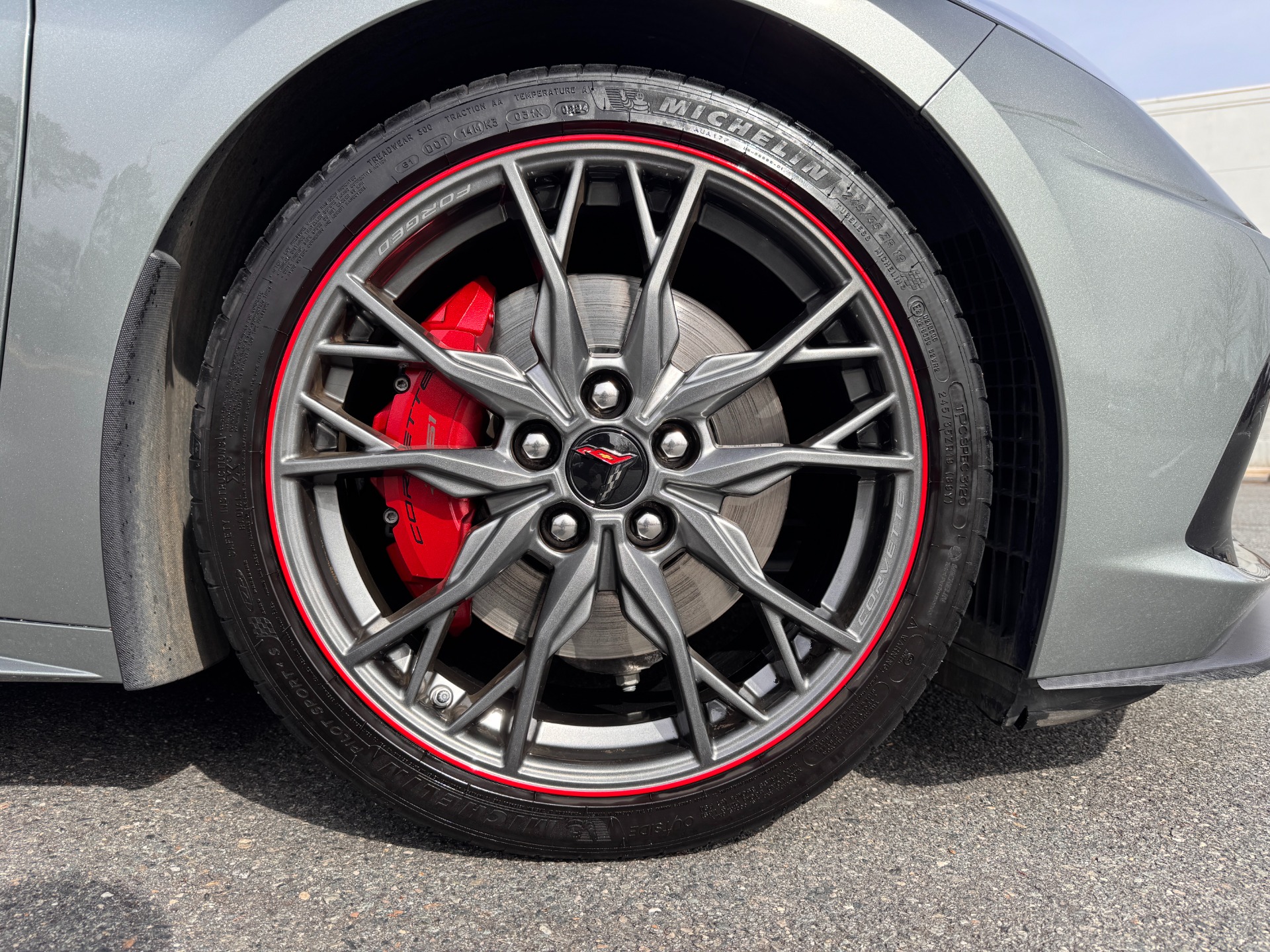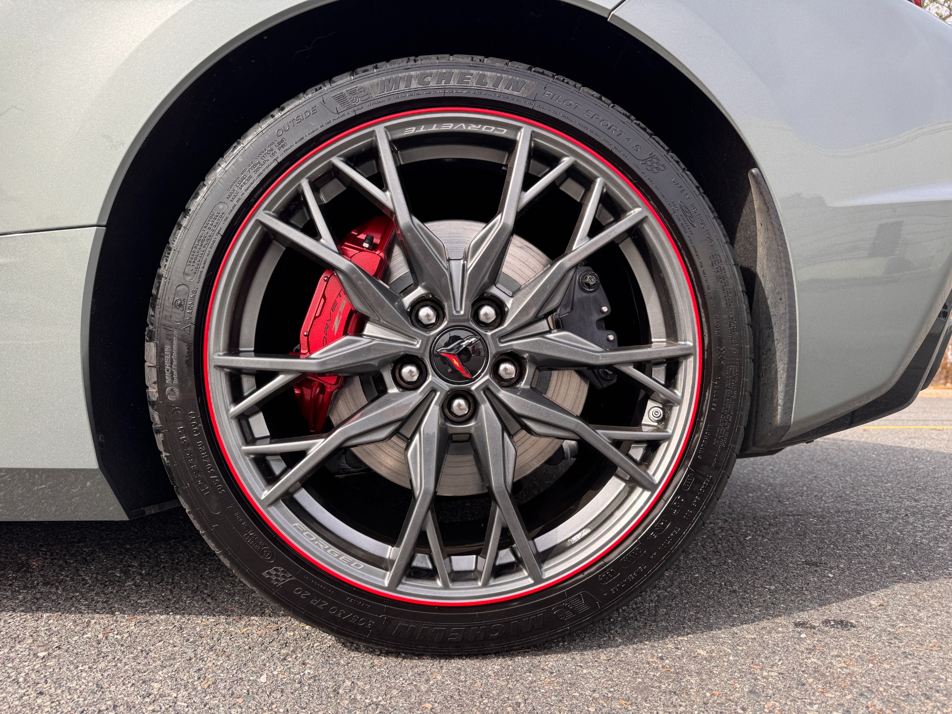 20-SPOKE MIDNIGHT GRAY FORGED ALUMINUM WHEELS W/ RED STRIPE