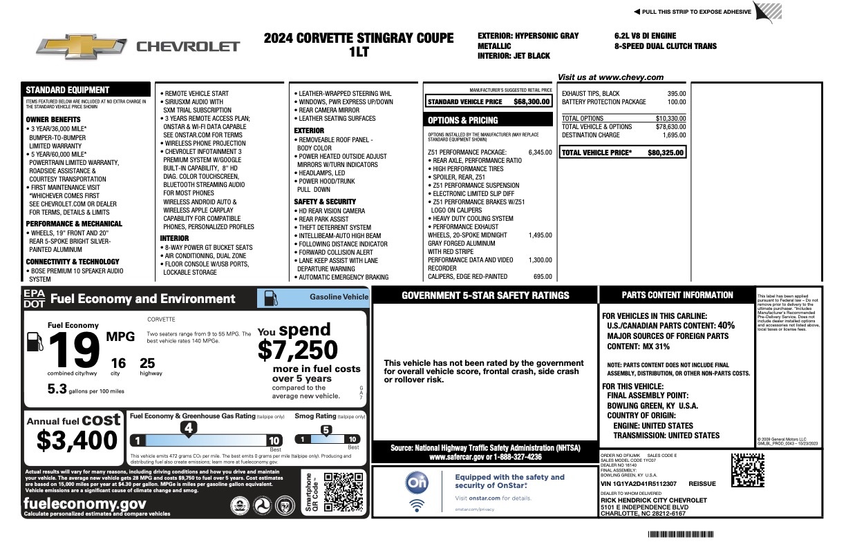 EXTENDED WARRANTY ON THIS 2024 CHEVROLET CORVETTE 1LT