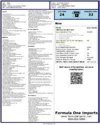 At Formula One Imports we pride ourselves on detailed and accurate listings for all our vehicles. In some cases, a typographical error or incorrect options or mileage may be shown. Due to our high volume of sales, Formula One Imports cannot be held responsible for typos or inaccurate descriptions. Please be sure to refer to the detailed